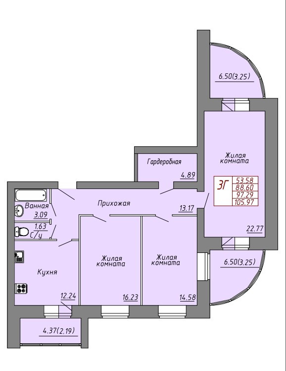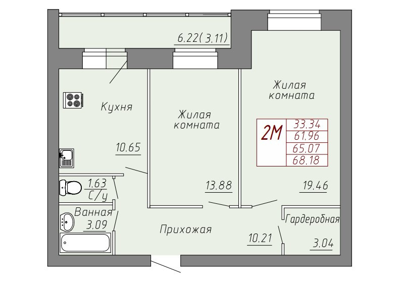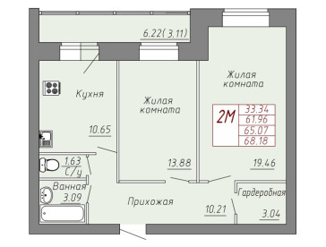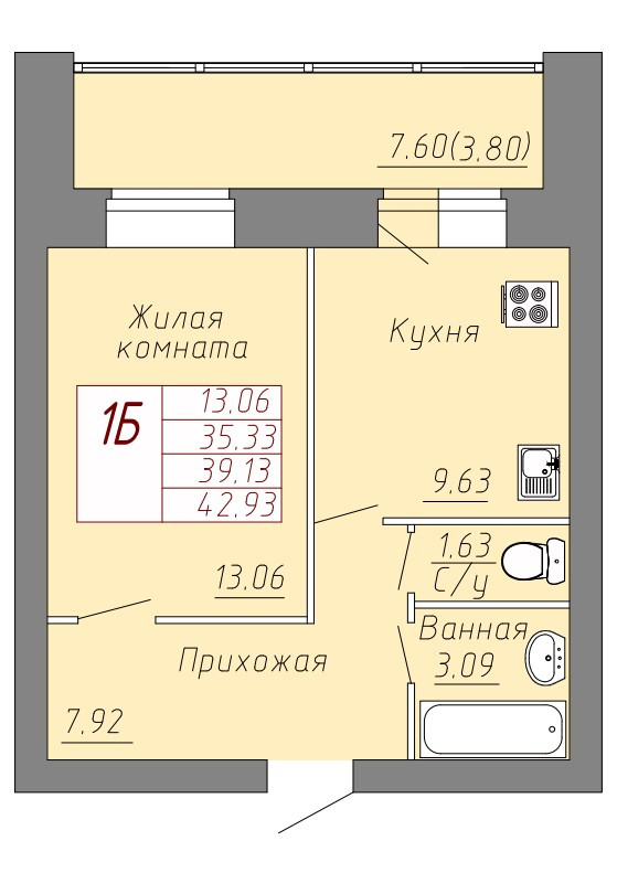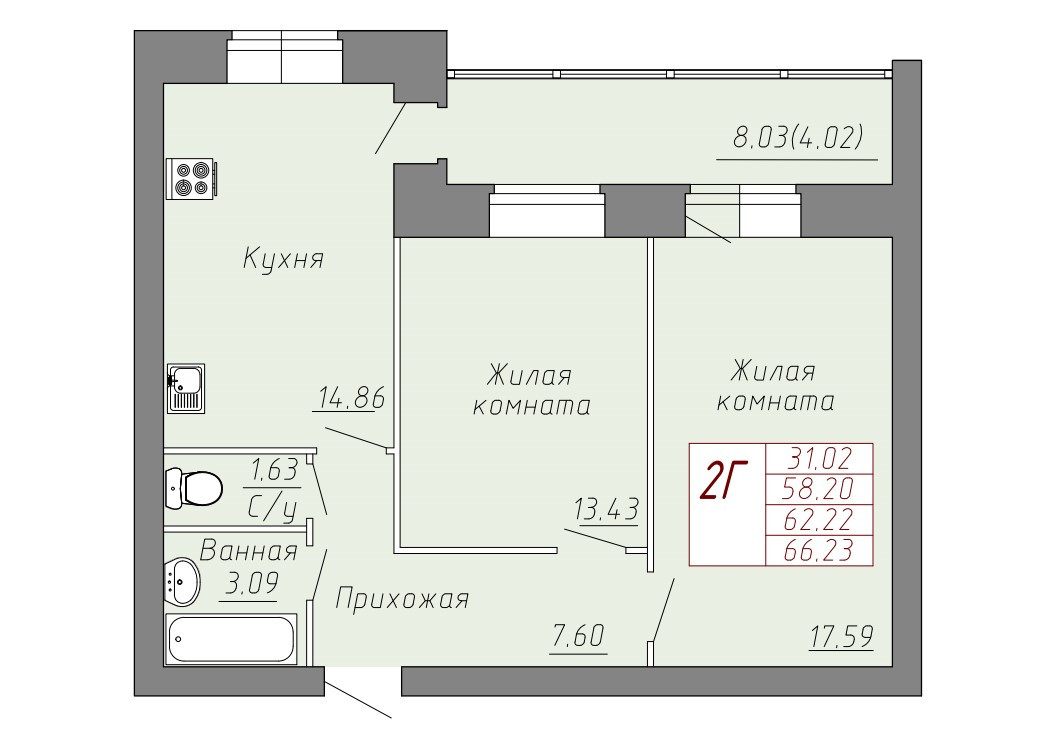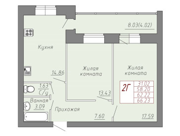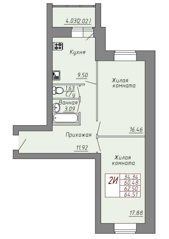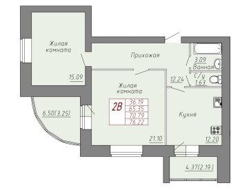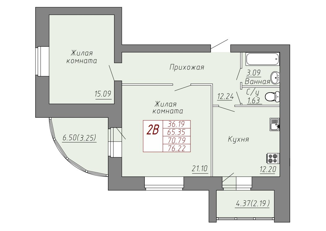 - 208 квартир: 23 однокомнатных, 147 двухкомнатных и 38 трёхкомнатных